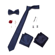 Ties Set: Necktie*1+Bow Tie*1+Pocket Square*2 +Cufflinks*2+ Lapel Pin*2 +Tie Clip*1