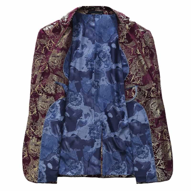 Mens Blazer Floral Printed Sport Coat Jacket Red