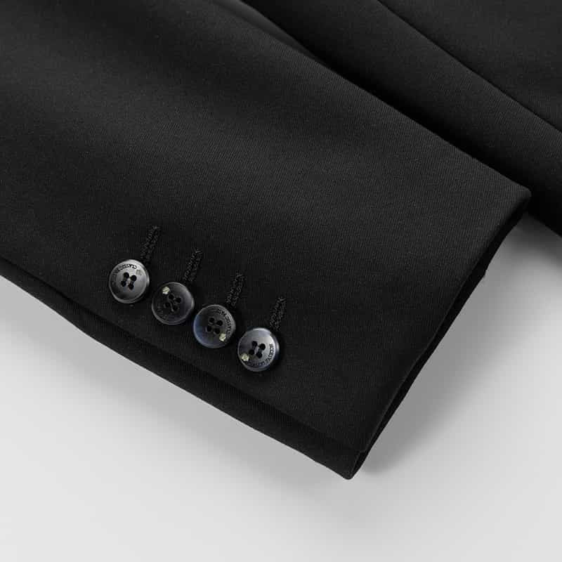 Suit: traditional single breasted design, one button style, notched Lapel, two front pockets.