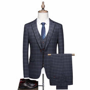 Men Blue Plaid Suit 3 Piece Slim Fit Windowpane Wedding Prom Tuxedos Formal Dress