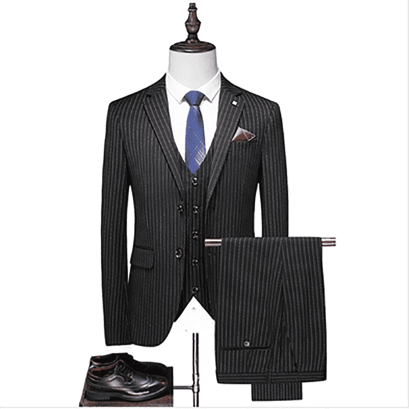 Men's 3 Piece Striped Suit in Navy Blue, Black and Grey