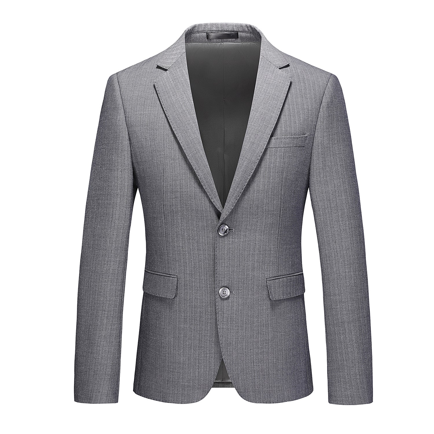 Men's Striped Blazer Coat in Solid Grey Two Buttons
