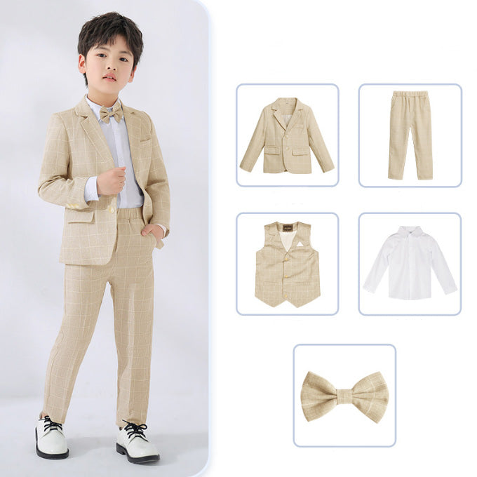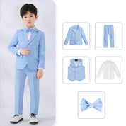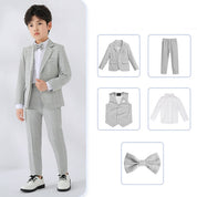 Boys Casual Suit 5 Piece Set of Jacket Vest Pants Shirt and Tie