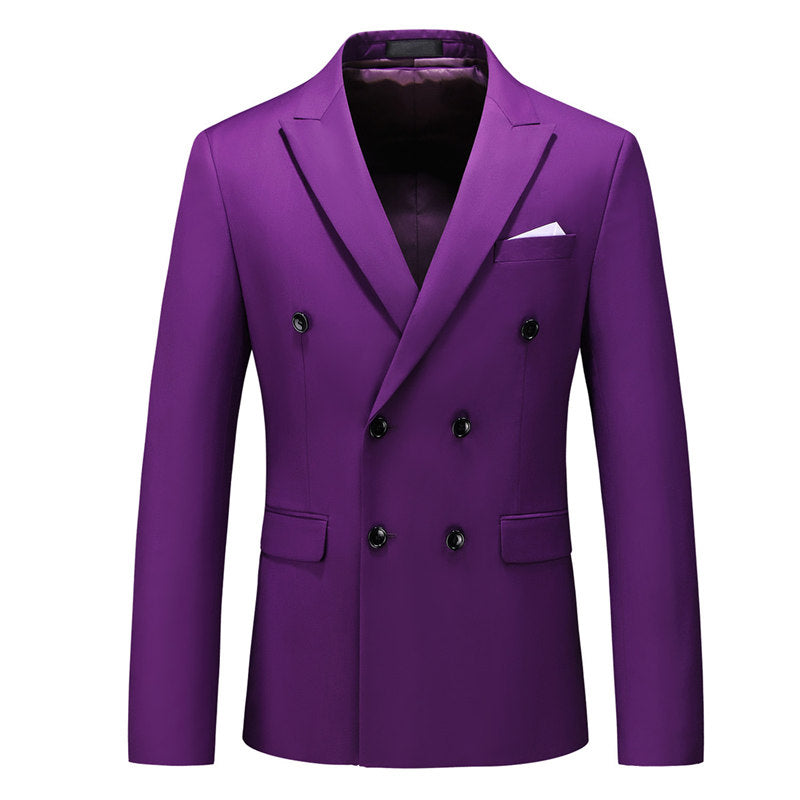 Suit Jacket Design: traditional double breasted design, two button closure, notched Lapel, two flap front pockets, two inner chest pocket.